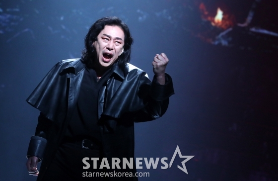 뮤지컬 배우 김법래가 12일 오후 서울 서초구 한전아트센터에서 진행된 뮤지컬 '블러디 러브' 프레스콜에 참석해 열연을 펼치고 있다.