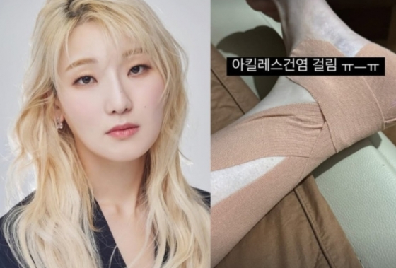 사진 속에는 그는 종아리부터 발뒤꿈치까지 테이핑한 모습이다. 아킬레스 건염은 아킬레스 건에 염증이 생겨 통증과 부종이 생기는 질환이다.