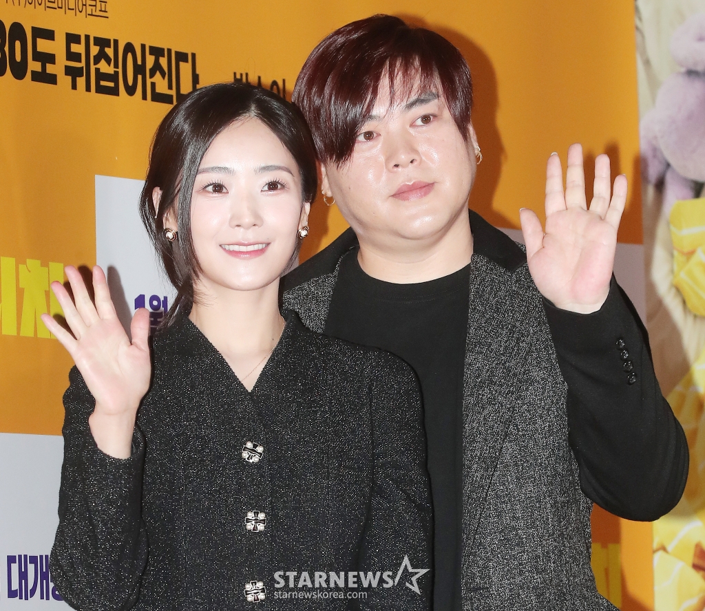 소율, 문희준 부부가 2일 오후 서울 송파구 롯데월드타워 롯데시네마에서 진행된 영화 '스위치' VIP 시사회에 참석해 포즈를 취하고 있다. '스위치'는 캐스팅 0순위 천만배우이자 자타공인 스캔들 메이커, 화려한 싱글 라이프를 만끽하던 톱스타 '박강'이 크리스마스에 인생이 180도 뒤바뀌는 순간을 맞이하면서 벌어지는 이야기를 담은 작품이다. 오는 4일 개봉. 2023.01.02