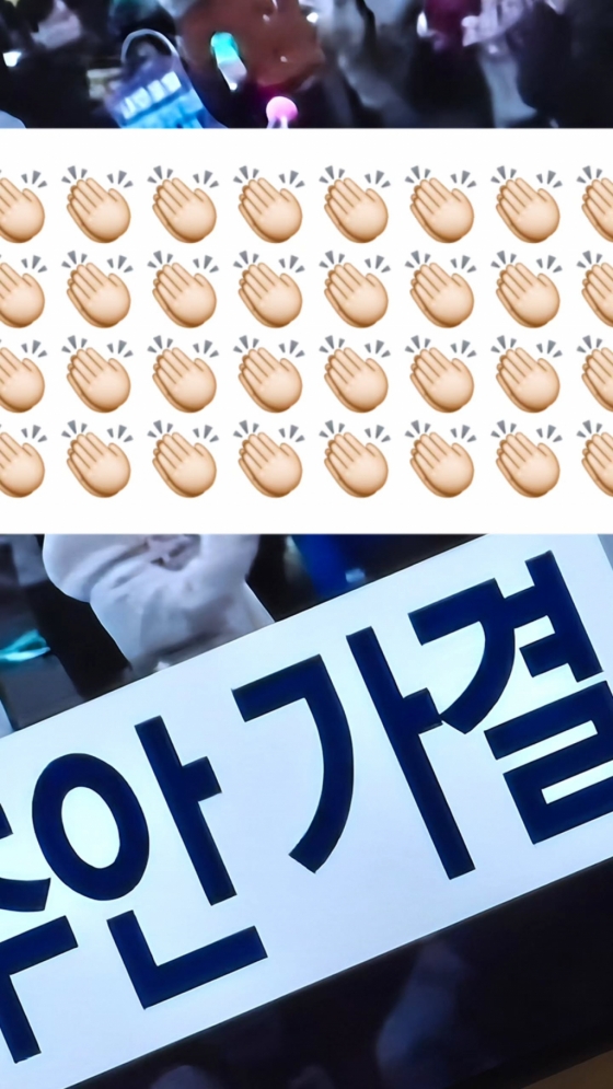 윤석열 대통령의 탄핵 소추안이 국회 본회의에서 가결된 가운데, 연예인들이 각자의 방법으로 환호성을 내지르고 있다.