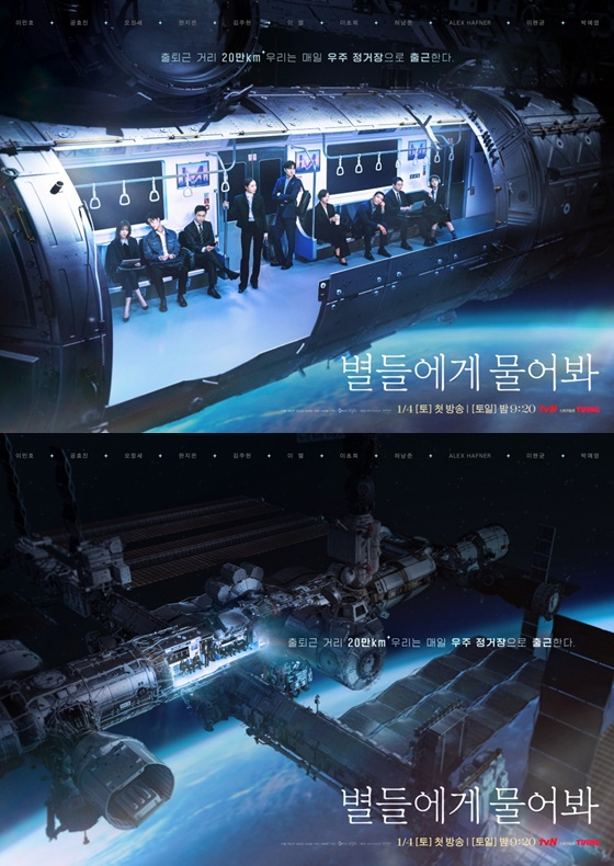 이처럼 '별들에게 물어봐'는 출근 포스터를 통해 일터인 우주 정거장으로 향하는 우주인들의 일상을 평범한 직장인들의 교통수단인 지하철 풍경으로 묘사하며 스페이스 오피스물만의 독특한 무드를 표현했다. '출퇴근 거리 20만 km 우리는 매일 우주 정거장으로 출근한다'라는 카피처럼 우주인들의 다사다난한 일상을 그리며 인생의 희로애락을 선사할 예정이다.