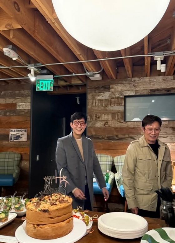 배우 이병헌이 이정재의 생일 파티를 열었다.