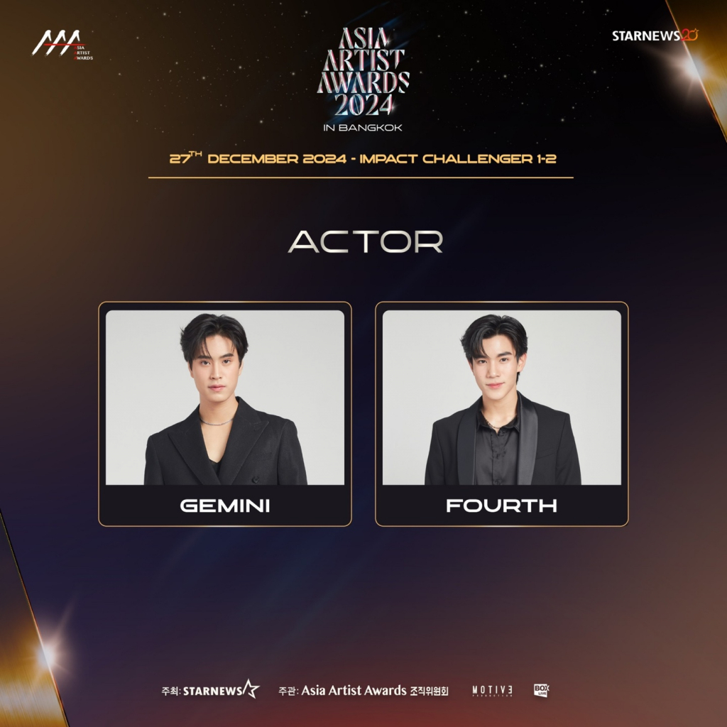 태국 배우 제미나이 노라윗(Gemini Norawit Titicharoenrak)과 포스 나타왓(Fourth, Nattawat Jirochikul)은 12월 27일 태국 방콕 임팩트 챌린저 홀 1-2(IMPACT Challenger Hall 1-2)에서 4시간여에 걸쳐 열리는 '제 9회 아시아 아티스트 어워즈'(The 9th Asia Artist Awards, 이하 'AAA 2024') 에 참석한다.