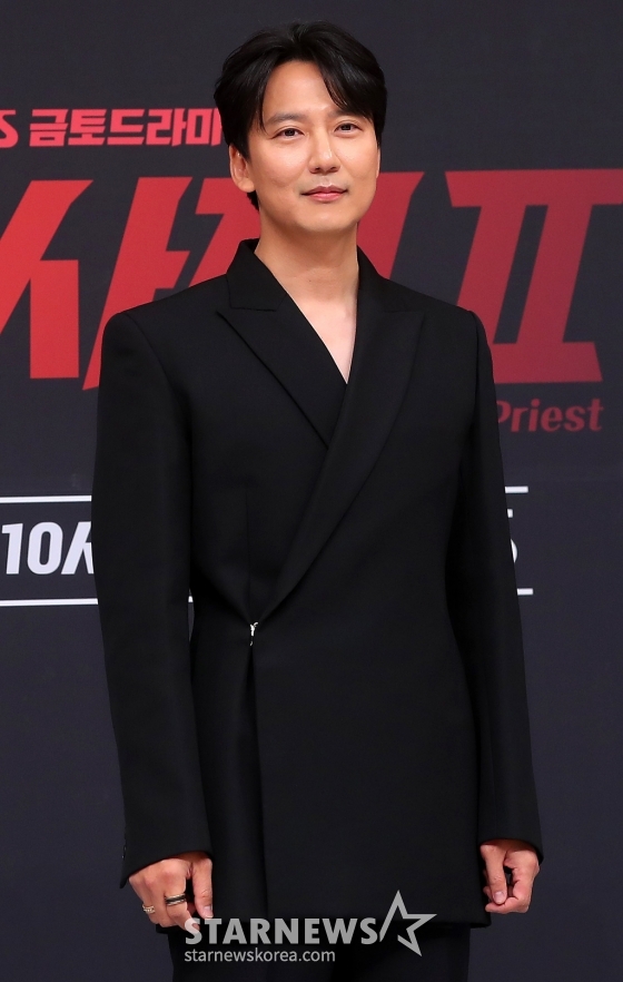 배우 김남길이 8일 오후 서울 양천구 목동 SBS 사옥에서 진행된 금토드라마 '열혈사제2' 제작발표회에 참석해 포즈를 취하고 있다. '열혈사제2' 낮에는 사제, 밤에는 벨라또의 역할을 위해 천사파 보스로 활약하는 분노 조절 장애 열혈 신부 김해일(김남길 분)이 부산으로 떠 국내 최고 마약 카르텔과 한판 뜨는 노빠꾸 공조 수사극이다. 2024.11.08 /사진=김창현 chmt@