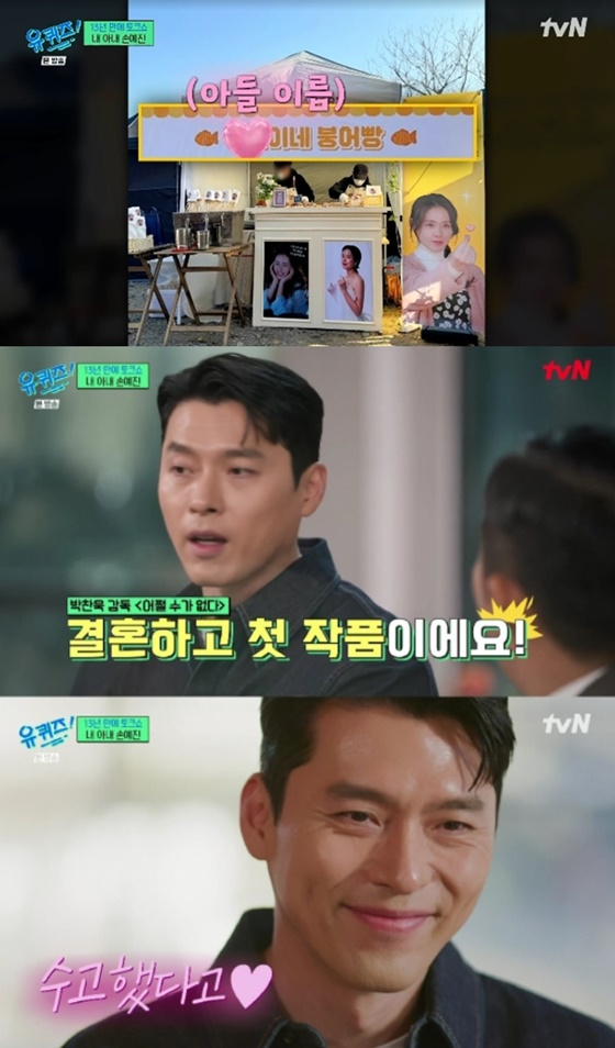 현빈은 지난 18일 방송된 tvN 예능 프로그램 '유 퀴즈 온 더 블럭'에 출연해 손예진이 촬영 중인 영화 '어쩔 수가 없다'(감독 박찬욱) 촬영장에 커피차를 보냈다고 밝혔다.