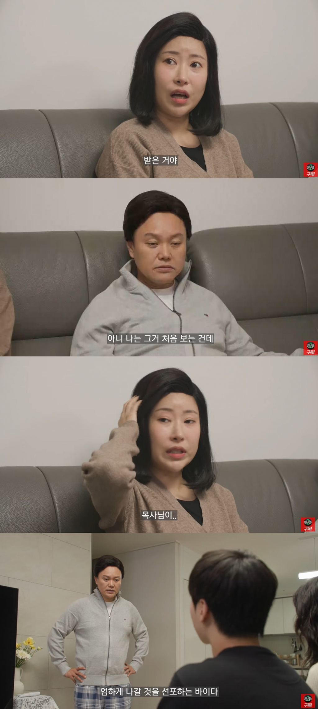 영상 속 김민교는 이세영과 함께 영화 '서울의 봄'을 시청하고 있다. 김민교는 "전두광 저 놈이 나쁜 놈이다"라고 하자, 이세영은 "카리스마 있는 거 아니냐"라고 호응했다. 이때 딸이 거실로 나와 "이 명품백 뭐냐"라고 물었고, 이세영은 "목사님이 주시니까 받은 거다. 주면 어떻게 거절하냐. 나 억울하다. 넣어놔라. 비싼 거다"라고 말한다.