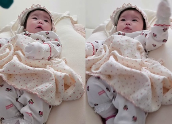 공개된 영상 속 박수홍 딸은 누워서 모빌을 바라보며 집중하는 모습이 담겼다. 생후 68일임에도 벌써 완성형 미모를 자랑해 눈길을 끌었다.