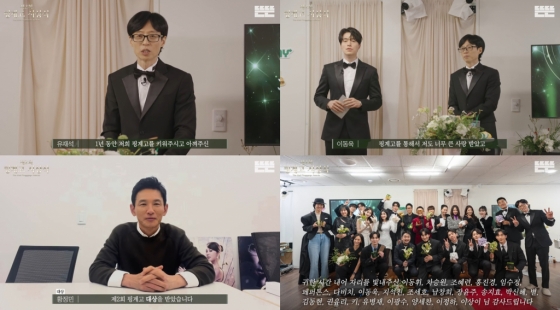 유튜브 채널 '뜬뜬 DdeunDdeun'은 지난 22일 오전 9시 '제2회 핑계고 시상식' 편을 업로드했다. 계주 유재석의 진행 속에 신인상, 인기 스타상, 우수상, 작품상, 최우수상, 대상 등 총 6개 부문 수상이 이루어진 가운데, 대상의 영광은 배우 황정민에게 돌아갔다.