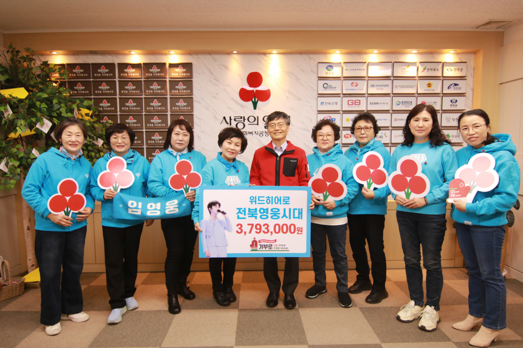 임영웅 팬클럽 위드히어로 전북영웅시대에서 희망2025나눔캠페인 성금으로 379만 3000원을 사랑의열매 전북 사회복지공동모금회(회장 한명규)에 기탁했다.