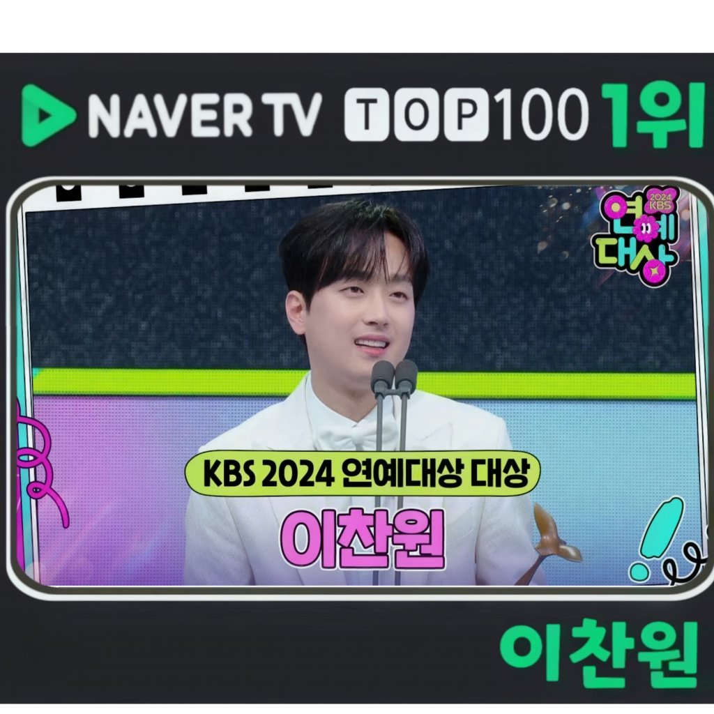가수 이찬원이 대상 수상한 KBS 2TV '2024 KBS 연예대상 수상' 영상이 네이버 TV 1위에 오르며 인기를 빛냈다.