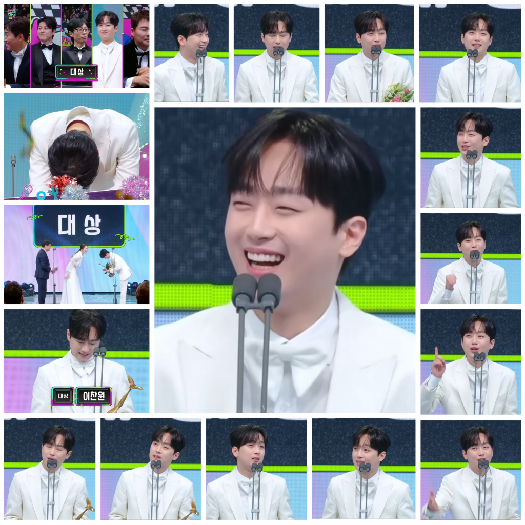 21일 오후 9시 20분부터 다음 날 오전 12시를 넘어서까지 방송된 '2024 KBS 연예대상'에서 이찬원은 MC로 활약함은 물론 대상까지 수상했다.