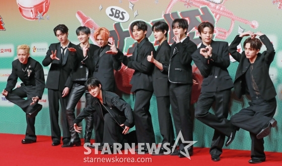 그룹 트레저가 25일 오후 인천 인스파이어 리조트에서 진행된 2024 SBS 가요대전 레드카펫 행사에 참석해 포즈를 취하고 있다. /2024.12.25