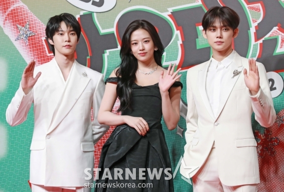 도영, 안유진, 연준이 25일 오후 인천 인스파이어 리조트에서 진행된 2024 SBS 가요대전 레드카펫 행사에 참석해 포즈를 취하고 있다. /2024.12.25