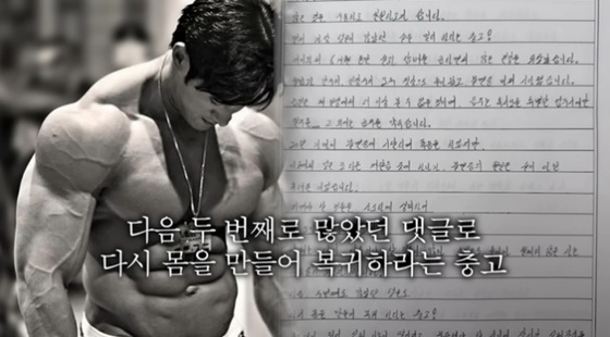 그러면서 "단백질은 하루 한 끼만 먹을 수 있는 참치 한 팩이 전부라 터무니없이 부족하고, 내 몸은 팔다리는 앙상하고 배만 볼록 나온 거미 체형이 됐다. 출소 후 몸을 다시 만드는 것은 자신이 있지만, 지금처럼 빠르게 근손실이 일어나는 과정에서 불균형만 일어나지 않기를 간절히 기도한다"고 덧붙였다.