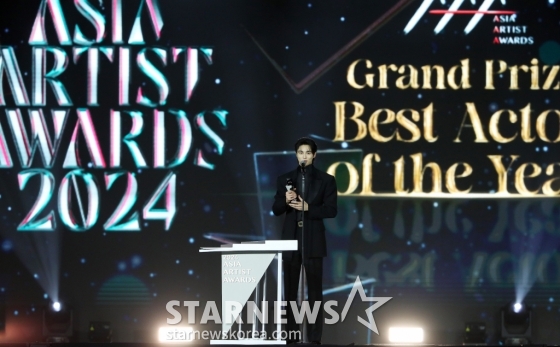 'AAA 2024' 대상인 올해의 남우주연상은 변우석에게 돌아갔다. 변우석은 6관왕을 차지하며 'AAA 2024' 최다 수상자의 주인공이 됐다. 그는 "먼저 'AAA' 관계자들 감사드리고, '선재 업고 튀어' 시청자분들 진심으로 감사드린다. 감독님, 작가님, 촬영 감독님, 조명 감독님 그 외 모든 스태프분들께 감사드리고, 같이 촬영한 배우분들께도 감사하다. 선재를 위해 노력해 주신 헤어, 메이크업 스태프분들 감사드리고, 변우석이 여기까지 올 수 있게 큰 힘을 주신 바로엔터테인먼트 식구들 진심으로 감사하다"라고 밝혔다.