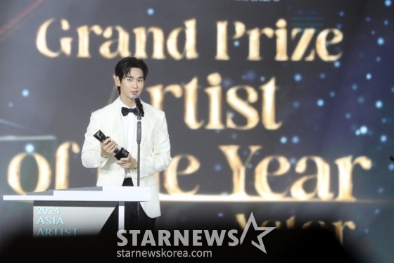 배우 김수현이 27일 오후 태국 방콕 임팩트 챌린저 홀 1-2(IMPACT Challenger Hall 1-2)에서 열린 '제 9회 아시아 아티스트 어워즈'(The 9th Asia Artist Awards')' 에서 'AAA 대상 올해의 배우상'을 수상하고 소감을 말하고 있다. 2024.12.27 /사진=임성균 tjdrbs23@