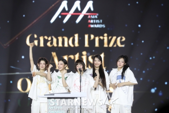 그룹 뉴진스가 27일 오후 태국 방콕 임팩트 챌린저 홀 1-2(IMPACT Challenger Hall 1-2)에서 열린 '제 9회 아시아 아티스트 어워즈'(The 9th Asia Artist Awards')' 에서 'AAA 대상 올해의 가수상'을 수상하고 소감을 말하고 있다. 2024.12.27 /사진=임성균 tjdrbs23@