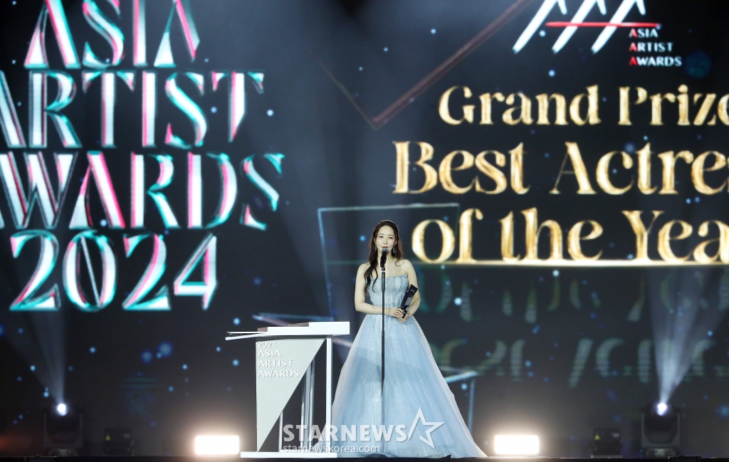 이날 박민영은 대상격인 '올해의 여우주연상'을 수상하는 영광의 주인공이 됐다. 더불어 'AAA 베스트 아티스트상'을 포함해 2관왕을 달성하며 'N번째' 전성기의 방점을 찍었다.