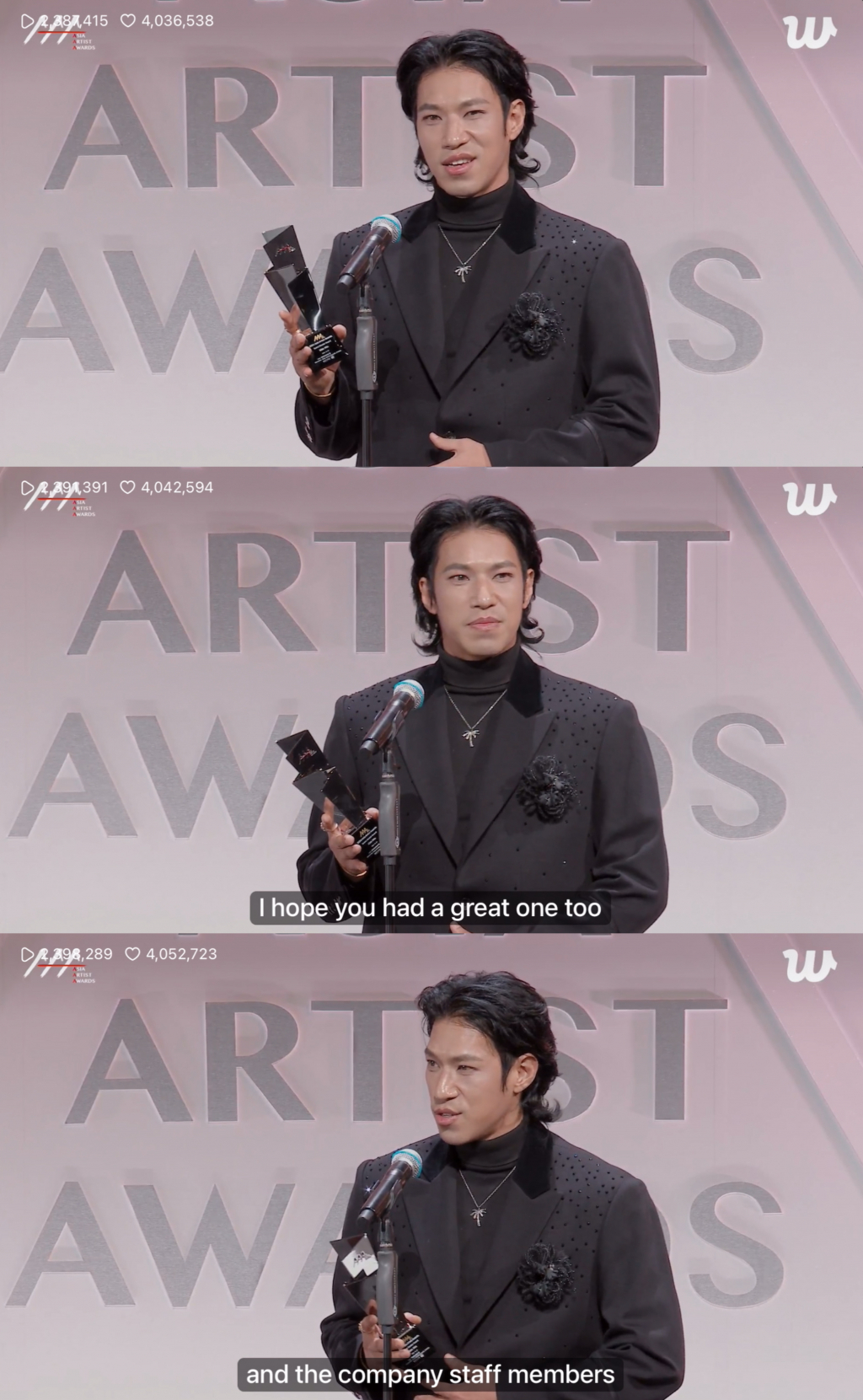 상을 수상하며 김민은 태국어로 인사를 전한데 이어 유창한 영어로 "이렇게 멋진 분들과 함께 상을 받게 될 줄은 몰랐습니다. 제가 받은 가장 좋은 크리스마스 선물 중에 하나인 것 같습니다. 여러분들도 좋은 선물 받으셨길 바랍니다"라고 소감을 전했다.