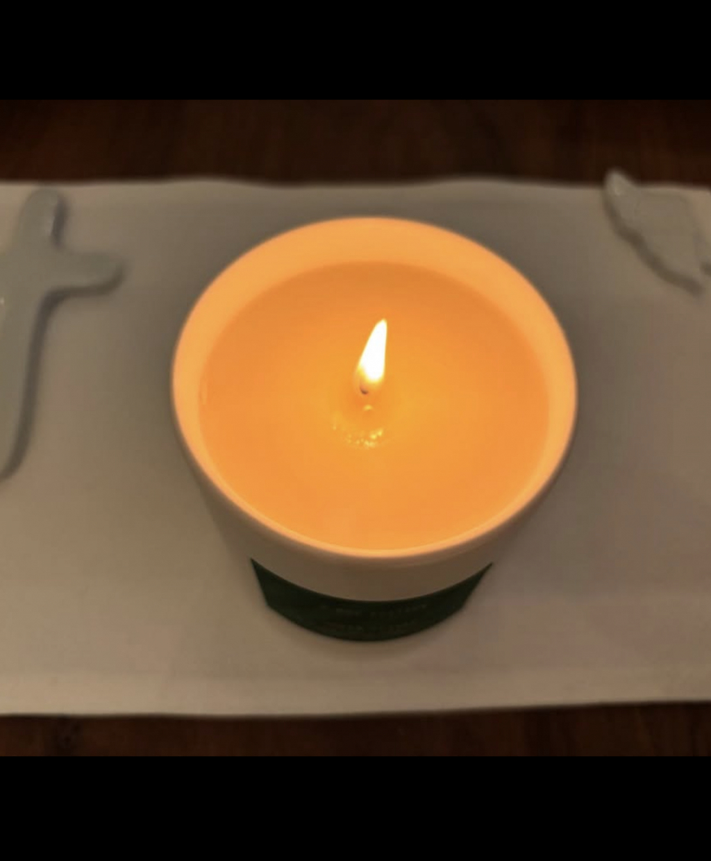 공개된 사진 속에는 십자가 옆 양초 하나가 은은한 빛을 내고 있다.