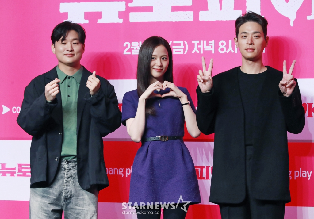 연예방송'뉴토피아, 사랑해 주세요'[★포토]발행 : 2025.01.07 ・ 11:43조회수 :이동훈 기자윤상현 감독, 배우 지수, 박정민이 7일 오전 서울 여의도 콘래드호텔에서 진행된 쿠팡플레이 오리지널 시리즈 '뉴토피아' 제작발표회에서 포즈를 취하고 있다.군인 재윤과 곰신 영주가 좀비에 습격당한 서울 도심을 가로질러 서로에게 달려가는 이야기 '뉴토피아'는 2월 7일 공개된다. /2025.01.07<저작권자 © 스타뉴스, 무단전재 및 재배포 금지>브리핑추천 기사이동훈 기자기자홈좋아요연예-방송의 인기 급상승 뉴스연예-방송의 최신 뉴스AD