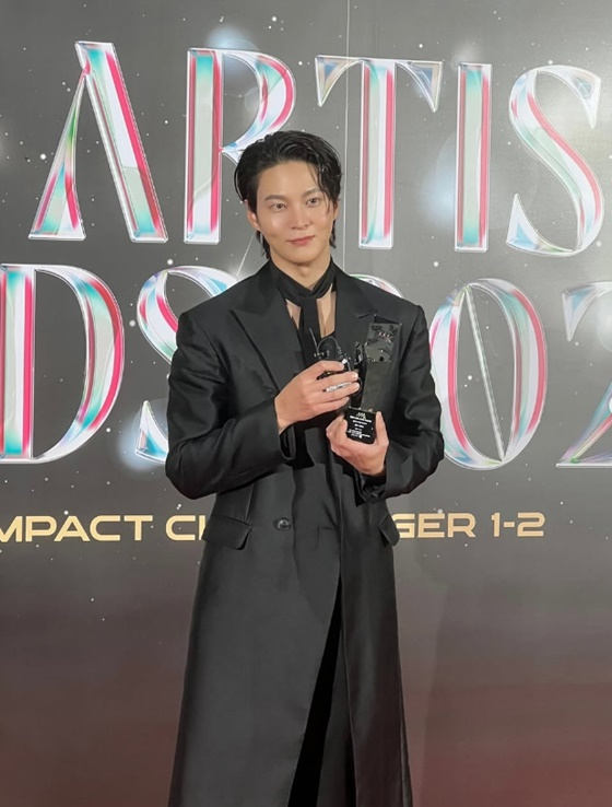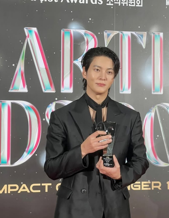 사진에는 'AAA 2024' 베스트 아티스트상 트로피를 들고 있는 주원의 모습이 담겼다.
