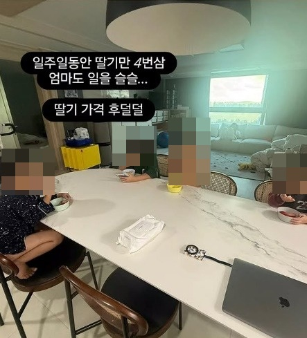 정주리는 또 "일주일 동안 딸기만 4번 삼. 엄마도 일을 슬슬... 딸기 가격 후덜덜"이라며 아이들과 딸기를 먹는 근황도 전했다.