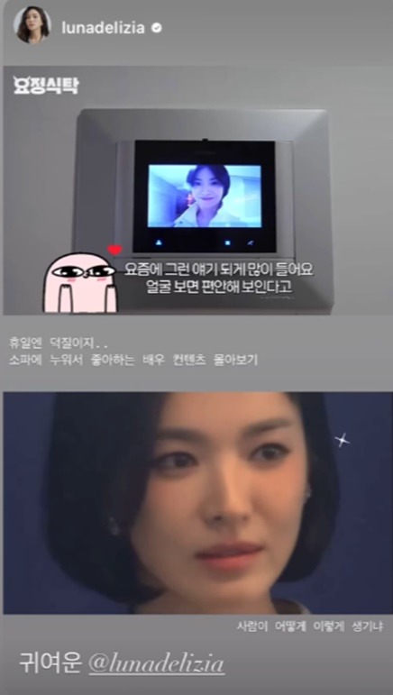 송혜교도 이런 최희서가 귀여운지 해당 게시물을 퍼온 뒤 "귀여워"라고 썼다.