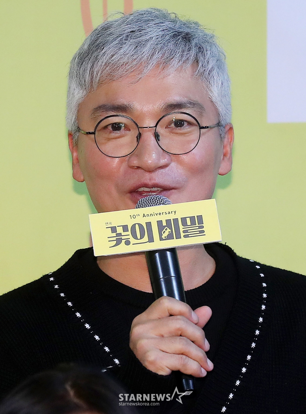 배우 조재윤이 15일 오후 서울 종로구 동숭동 예술가의 집에서 진행된 연극 '꽃의 비밀' 제작발표회에 참석해 인사말을 하고 있다.
