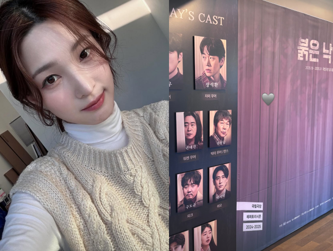 율희는 15일 하트 이모티콘과 함께 연극 '붉은 낙엽'을 보기 위해 국립극장 달오름극장을 찾은 근황 사진을 공개했다.