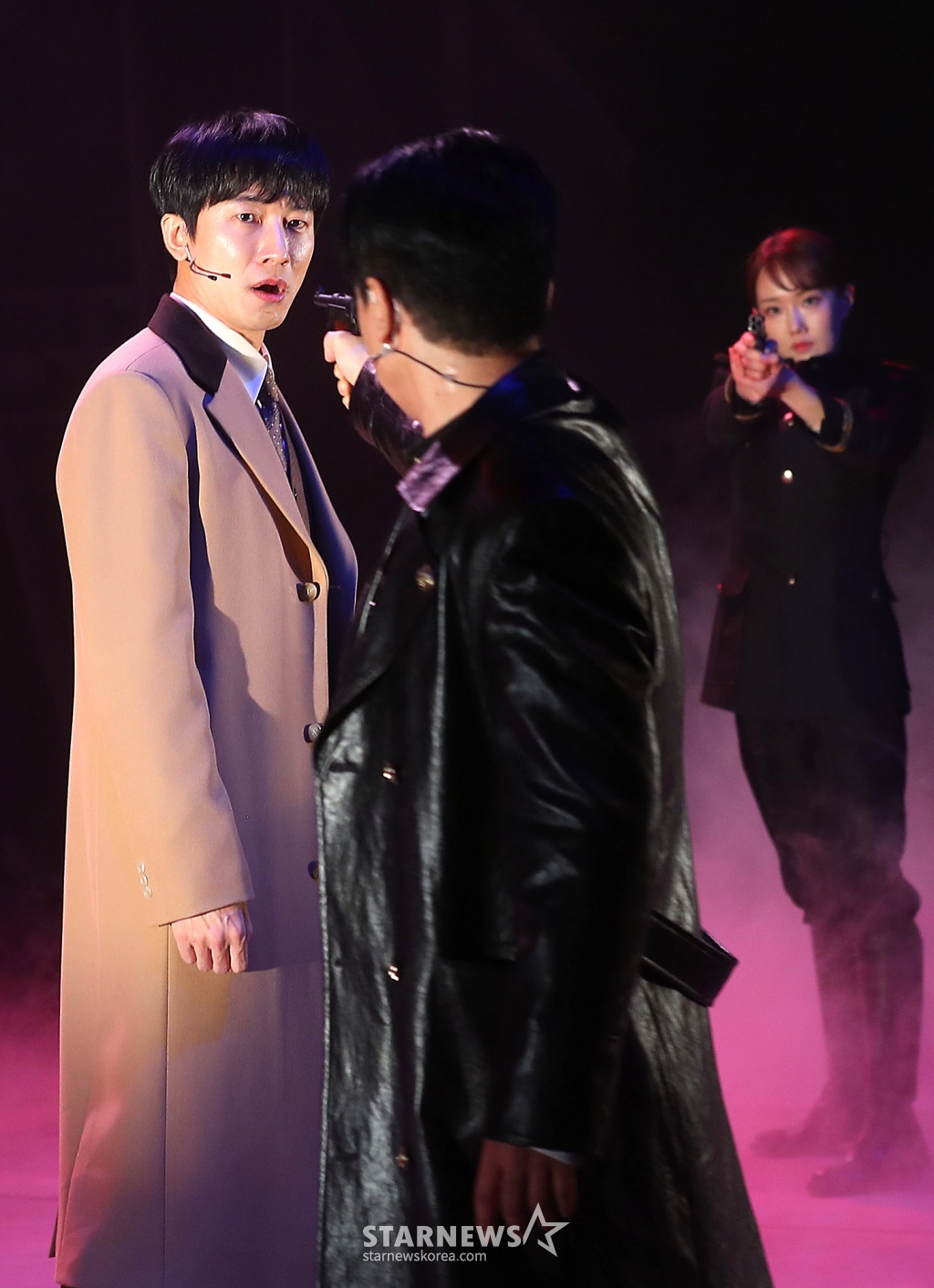 뮤지컬 배우 성태준, 김진철, 한수림이 16일 오후 서울 마포구 서강대학교 메리홀에서 진행된 뮤지컬 '어제의 시는 내일의 노래가 될 수 있을까' 프레스콜에서 열연하고 있다.