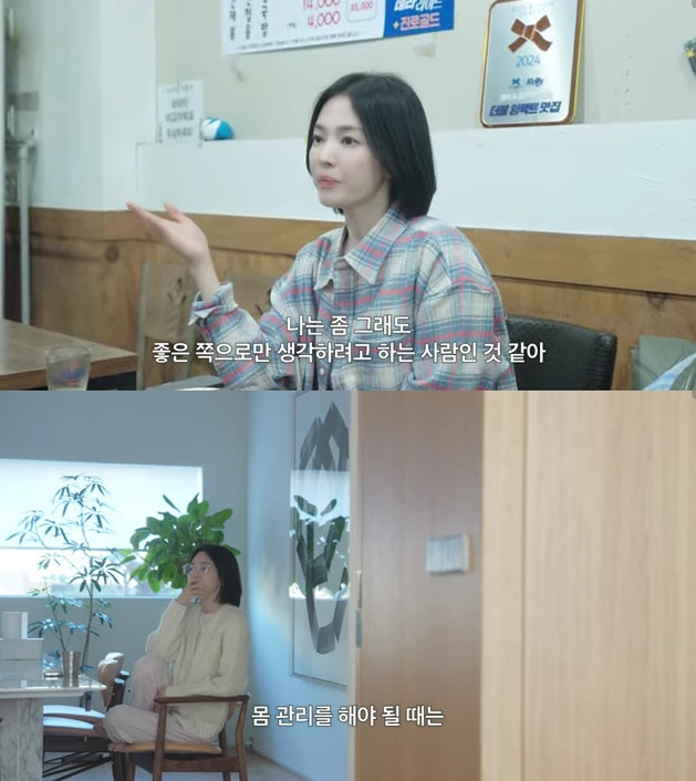 강민경이 "언니를 보면 늘 쭉 간 것처럼 보인다"고 했지만 송혜교는 "나름 많은 일들이 있었다. 나는 좀 그래도 좋은 쪽으로만 생각하려고 하는 사람인 것 같다. 안 좋은 일이 생기면 빨리 잊으려고 하는 것도 같다"고 했다.