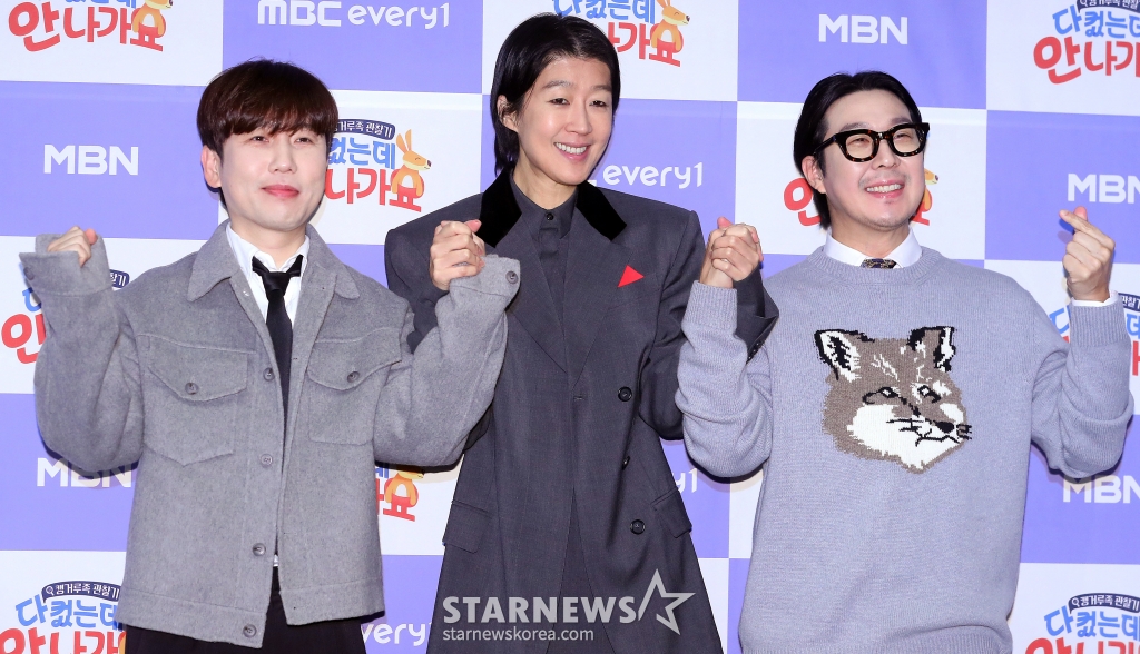 방송인 남창희, 홍진경, 하하가 17일 오전 서울 마포구 상암동 스탠포드 호텔에서 진행된 MBC에브리원 '다 컸는데 안 나가요' 제작발표회에 참석해 포즈를 취하고 있다.