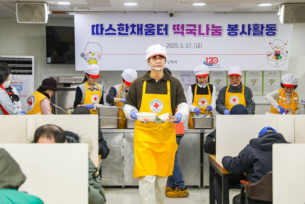 이승기는 17일, 대한적십자사와 함께 서울역 인근 무료급식시설 따스한채움터에서 취약계층을 위한 떡국 나눔 봉사활동을 진행했다.