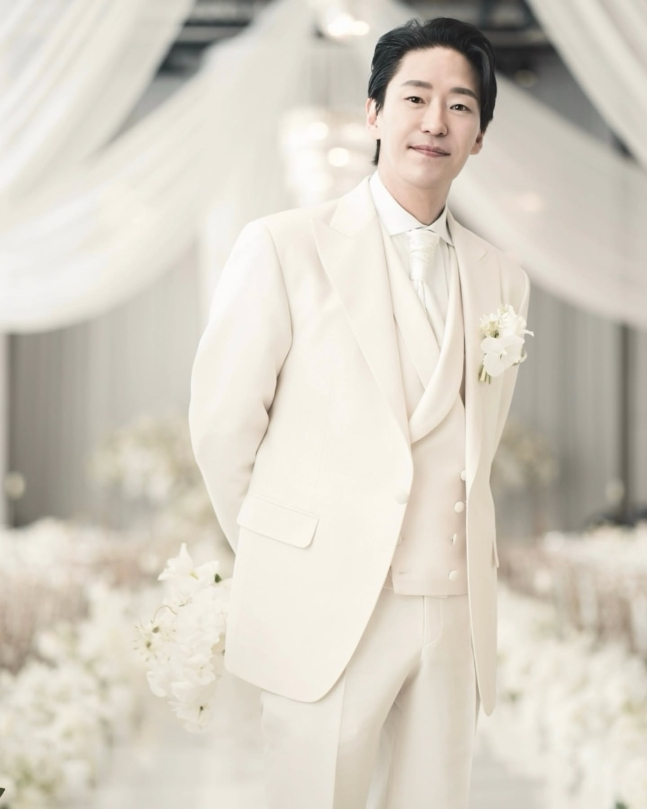 공개 된 사진은 결혼식장에서 화이트 턱시도를 입은 엄기준의 모습. 결혼을 앞둔 설렘이 느껴진다.