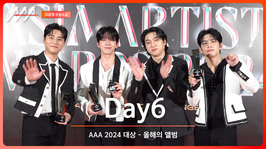 데이식스는 지난 12월 27일 필리핀 아레나에서 열린 ' 태국 방콕 임팩트 챌린저 홀 1-2에서 열린 AAA 2024에서 대상에 해당하는 'AAA 올해의 앨범'을 비롯해 베스트 아티스트, 베스트밴드 부문을 수상하면서 3관왕에 올랐다.