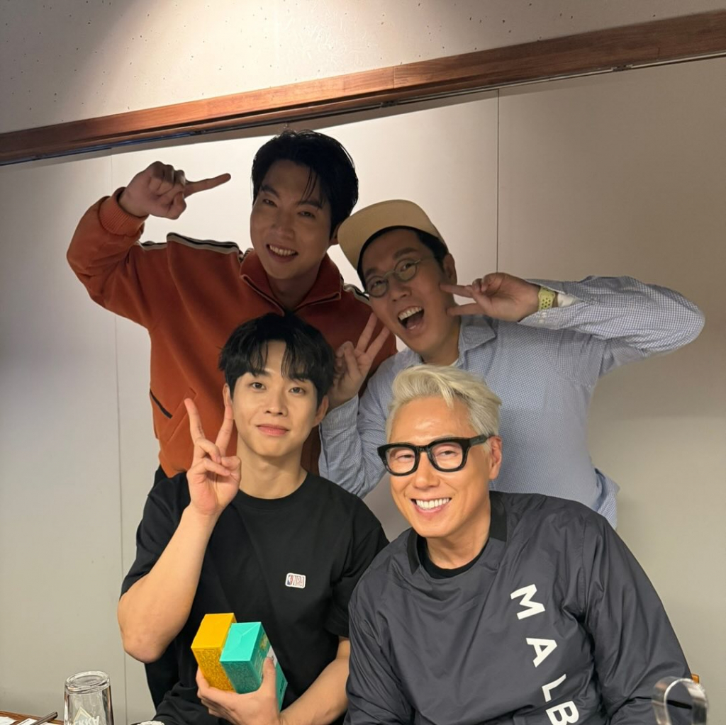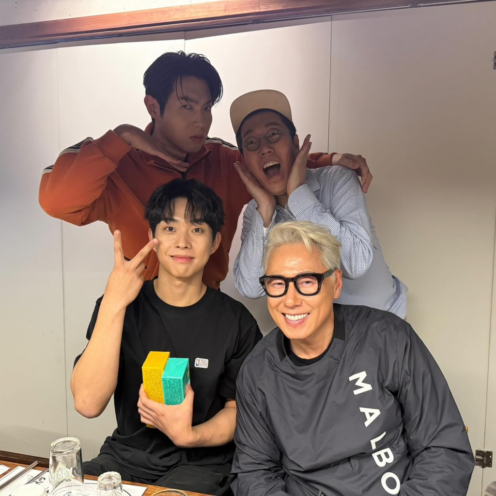 사진 속 네 사람은 MBC 예능 '라디오스타' 촬영 후 고기집에서 화기애애한 분위기를 자아내고 있는 모습. 김영철, 최상엽, 손태진은 설립자이자 대표 프로듀서 윤종신이 수장으로 있는 미스틱스토리 소속 연예인으로 카메라를 향해 브이 포즈를 취하며 보는 이들에게 훈훈함을 안겼다.