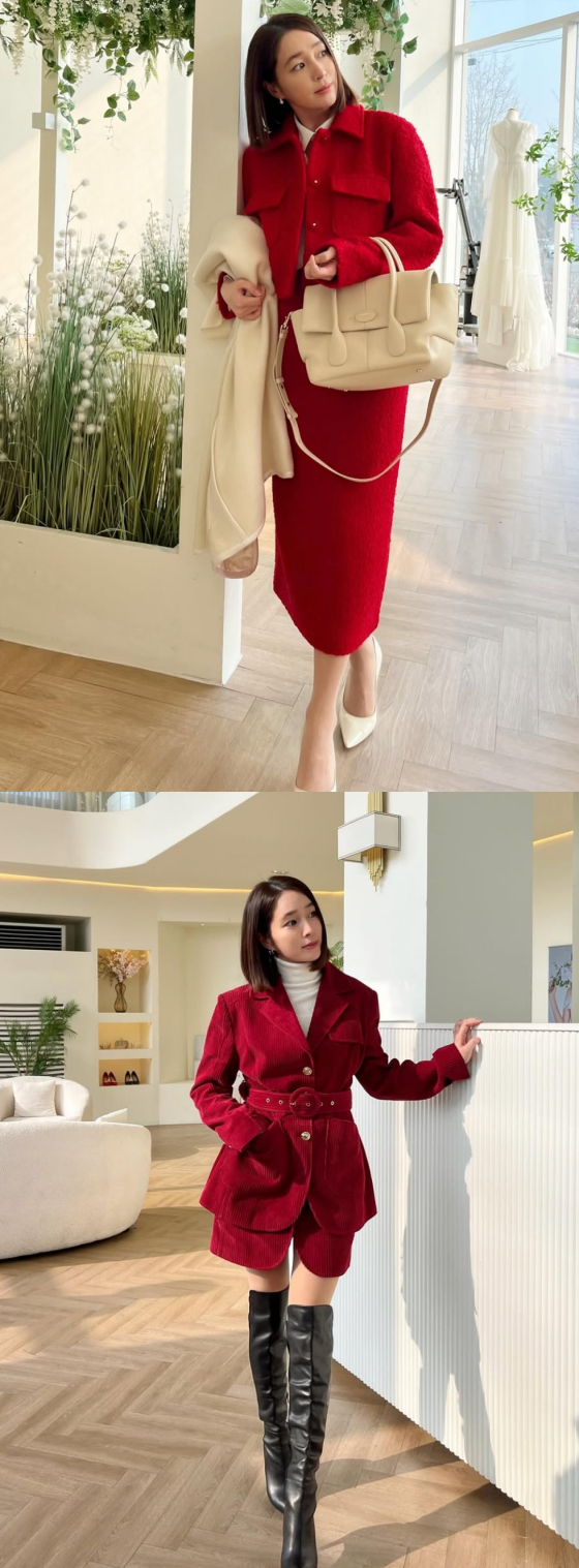 이민정은 23일 자신의 SNS에 "레드 옷을 많이 입은 날. 내일은 파랑 많이 입자. 눈코 뜰 새 없이 열촬 중"이라는 글과 함께 사진을 게재했다.