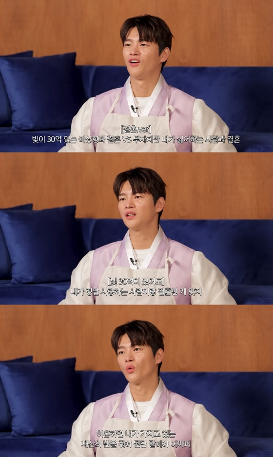 이후 결혼을 전제로 한 같은 질문이 나오자 "이거는 진짜 엄청 어렵다. (빚이 있어도) 내가 정말 사랑하는 사람이랑 결혼하는 게 맞다"고 답했다.