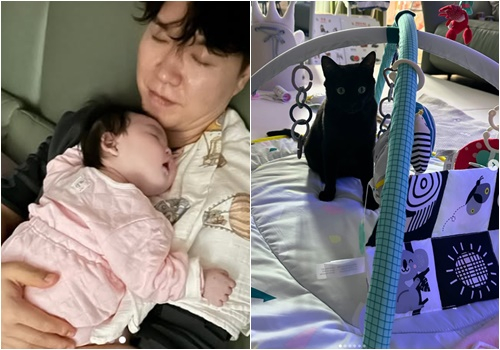 곧 100일을 맞는 딸의 육아를 함께 하는 반려묘를 향한 애정이 느껴진다.