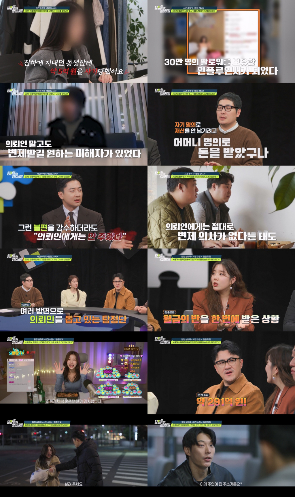 27일 방송된 '탐정들의 영업비밀'에서는 '도깨비 탐정단'을 찾아온 의뢰인이 친하게 지내던 동생이자 인플루언서에게 약 5억원 정도의 사기를 당했다고 호소했다. 해당 인플루언서는 사기로 징역형이 확정되었지만, 출소 1년 만에 30만명의 팔로워를 보유하게 됐고 호화로운 생활 중이었다. '30만 인플루언서'답게 협찬과 광고, 공동구매는 물론 19금 성인 콘텐츠를 판매하며 팔로워를 늘려가고 있었지만, 변제 능력이 없다며 의뢰인의 돈은 갚지 않고 있었다.