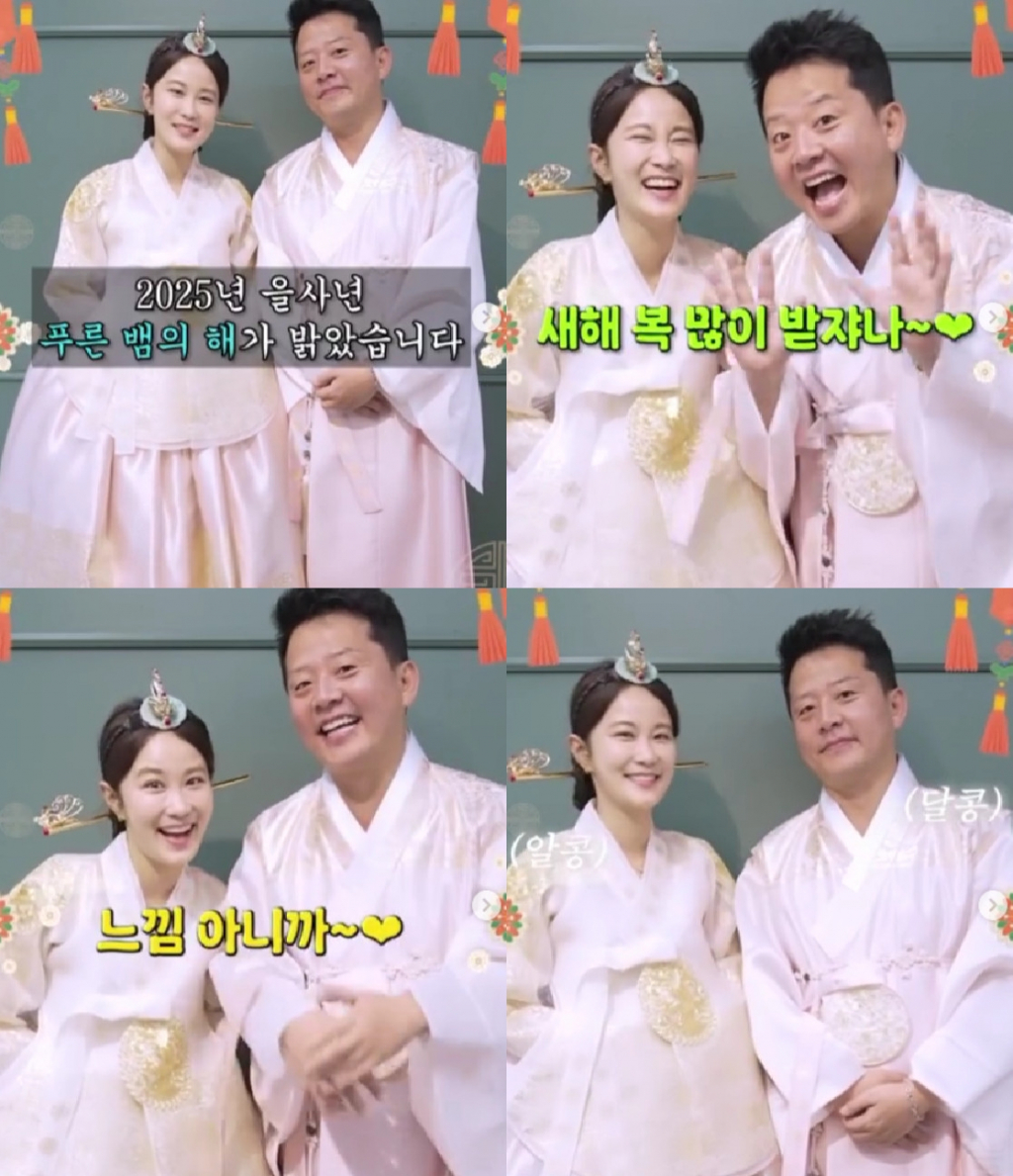 이어 한복을 입고, 설 인사를 전하는 영상 속 김지민, 김준호는 "2025년 을사년 푸른 뱀의 해가 밝았다. 2025년 만사형통하시고 건강하시고 새해 복 많이 받으세요. 건강하세요. 저희 예쁘게 봐주세요"라고 말했다.
