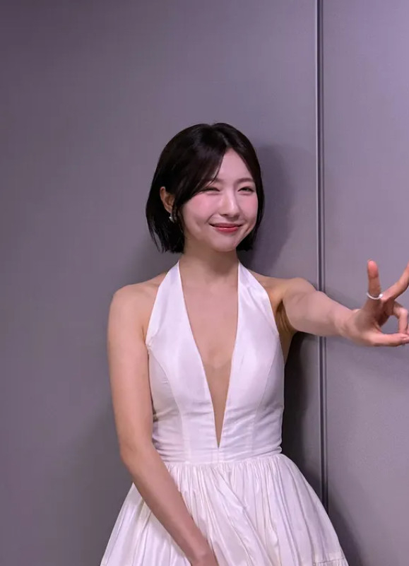 공개된 사진 속 주현영은 명치까지 파여있는 흰색 드레스를 착용하고 있다. 또한 지상렬에 대한 팬심을 드러내며 그는 청순한 분위기를 뽐내고 있다.