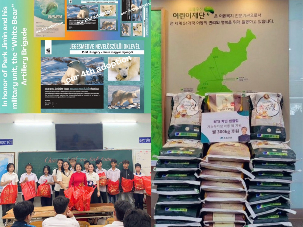 이는 '지민의 책장'(Jimin's Bookshelf) 자선 프로젝트 일환으로, 베트남 팬들은 꾸준히 어려운 학생들에게 장학금과 선물을 지원하고 있다.