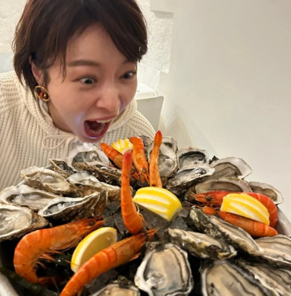 공개된 사진 속 황정음은 굴과 새우 앞에서 배고파하는 모습이다. 장난스러운 포즈를 지은 그는 이혼 조정 중에서도 밝은 모습을 보인다.
