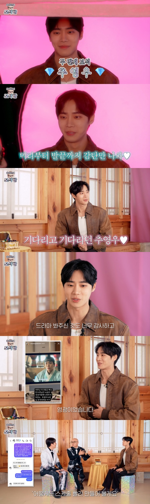실제로 홍석천은 추영우의 '보석함3' 출연을 위해 SNS로 러브콜을 보내며 '추영우 모시기 작전'에 돌입했다. 과거 홍석천은 JTBC '옥씨부인전' 속 추영우의 모습을 캡처해 SNS 스토리에 업로드하는가 하면, "멋진 영우님, '보석함'에 출연해주시면 너무 재밌을 것 같아요. 변우석 봤을 때 같은 느낌이어서 반응이 좋을 것 같다"라는 내용의 DM(다이렉트 메시지)을 직접 보내며 추영우에 공을 들였다.