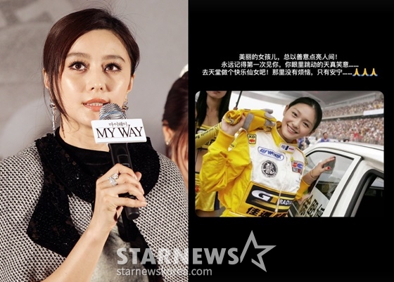 판빙빙은 4일 개인 SNS에 "아름다운 소녀, 항상 친절함으로 세상을 밝혔던! 처음 봤을 때 당신의 눈에서 본 순진한 미소를 영원히 기억할 것"이라며 서희원의 사진을 올렸다.