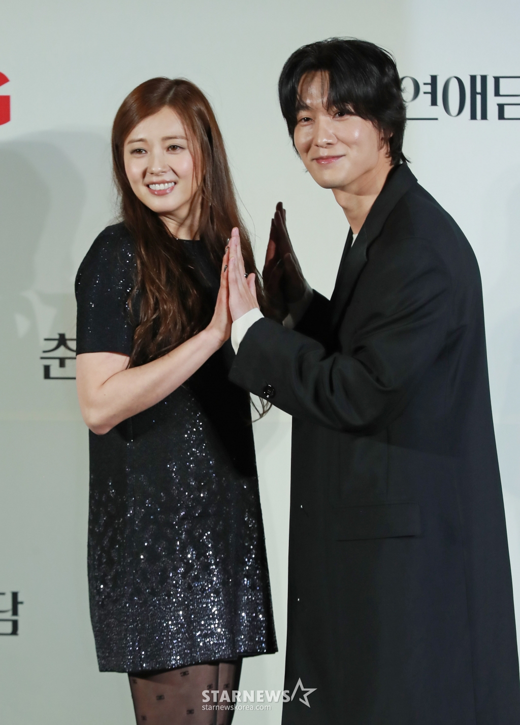 배우 고아라, 장률이 5일 오후 서울 CGV용산아이파크몰에서 진행된 티빙 오리지널 시리즈 '춘화연애담' 제작발표회에 참석해 포즈를 취하고 있다.