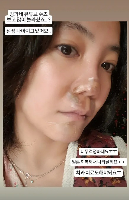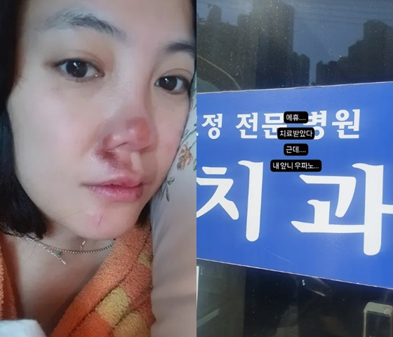 배우 고은아가 코와 함께 치아도 부상당한 소식을 전했다.