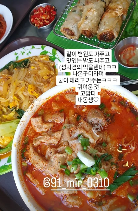 고은아는 추가로 "같이 병원도 가주고 맛있는 밥도 사주고. 성시경의 먹을 텐데 나온 곳이라며 굳이 데리고 가주는 귀여운 것. 고맙다 내 동생"이라며 동생 미르에게 고마움을 전하기도 했다.